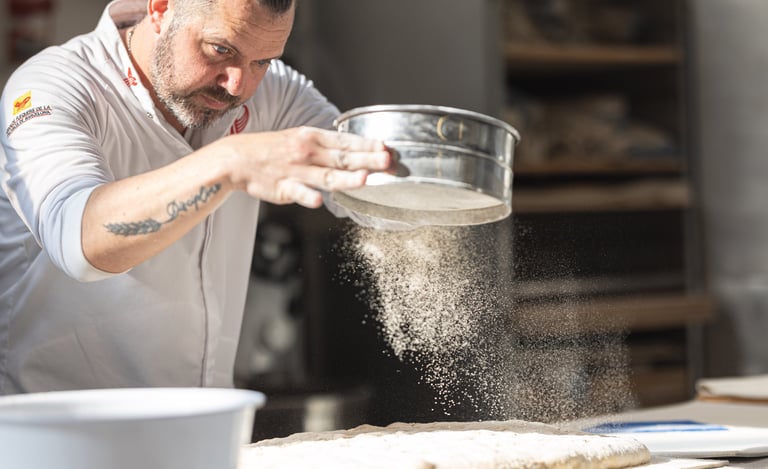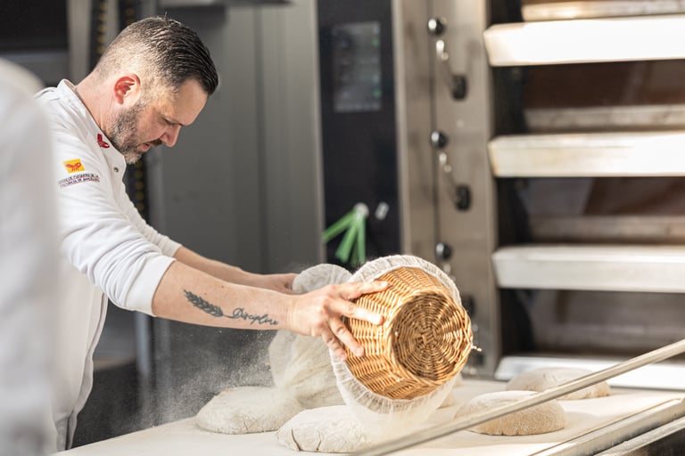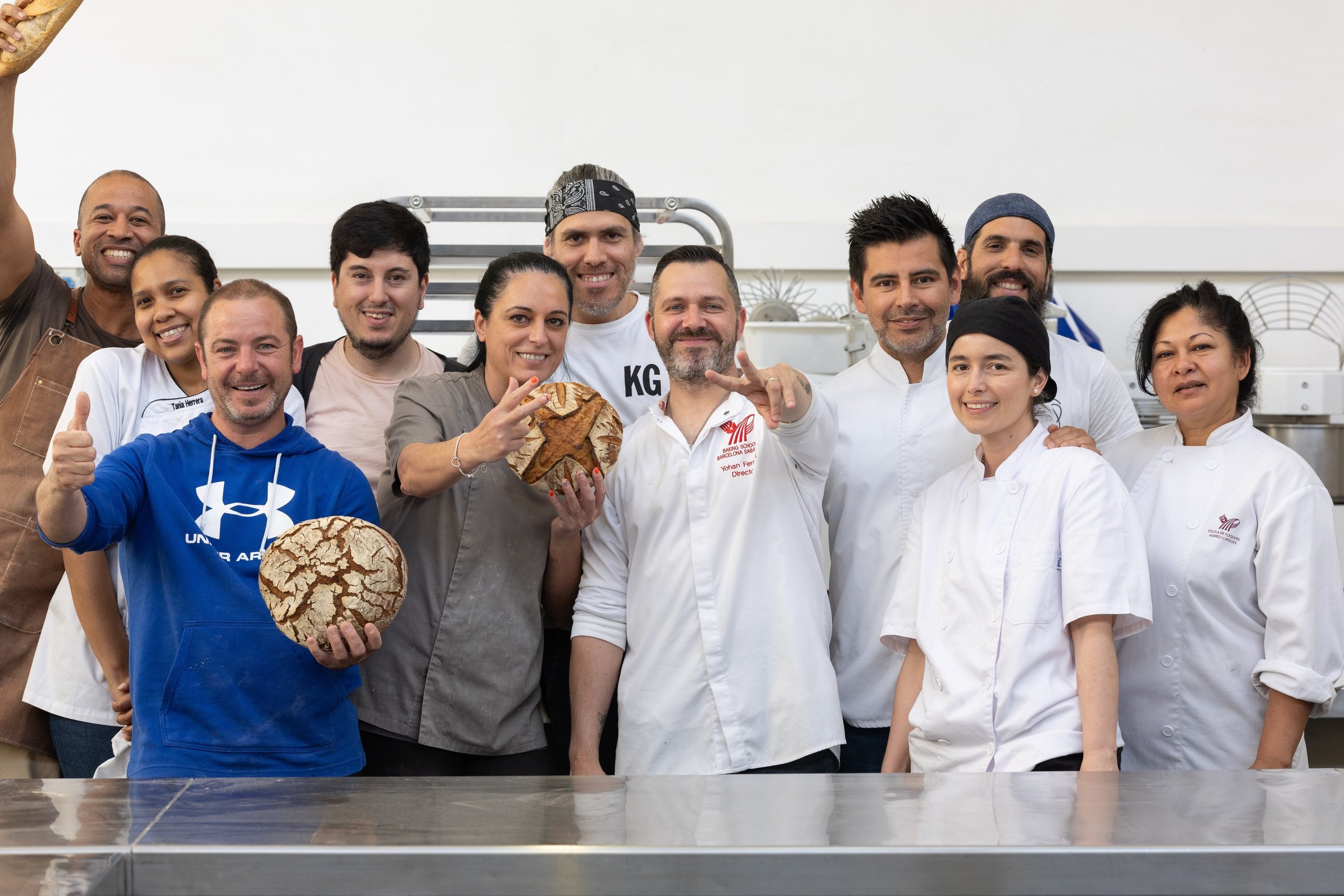 Durante las 30 horas de formación realizamos panes como el Miche de Florencio Aurora, el Negrillo, Espelta, Monoccocum, la Cibatta de Senatore Capelli, el Centeno giganton, Pan de cerveza, Korhasan, la Baguette de tradición francesa, el Pavés, el Barbú du Roussillon y Respectus Pains entre otros tantos más. Cinco jornadas intensas donde nos divertimos juntos, comimos unidos y acabamos llenos de harina hasta el gorro.