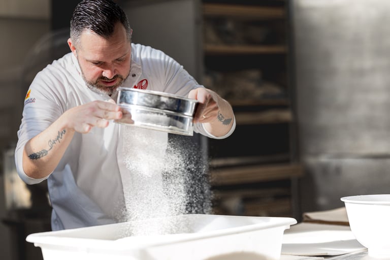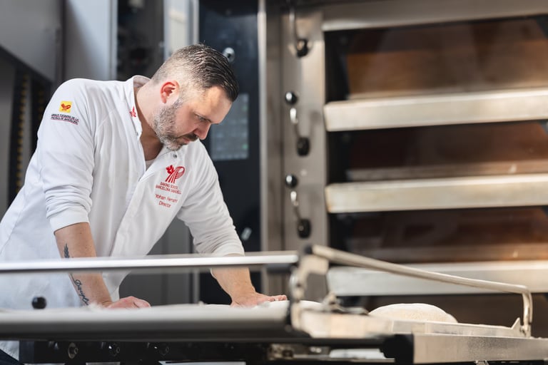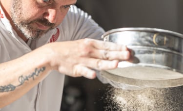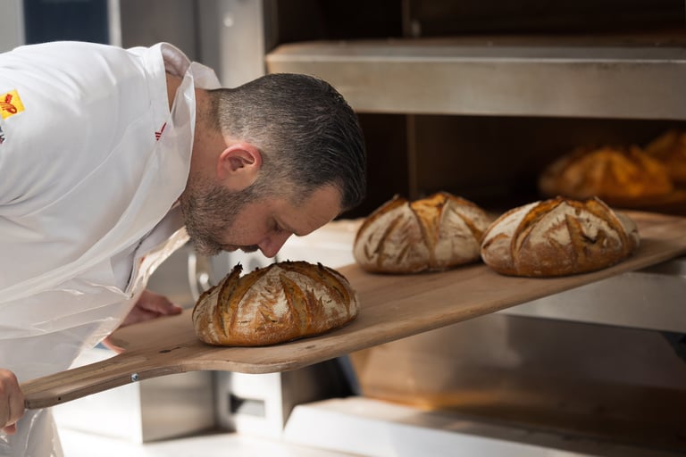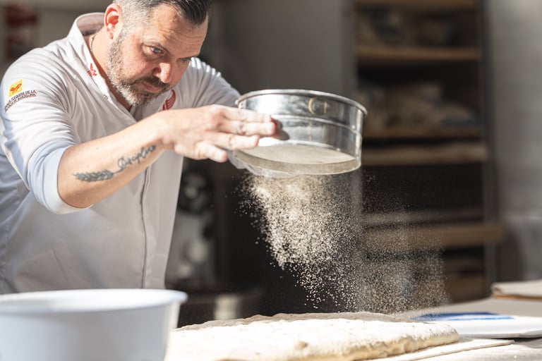 Yohan a parte de un gran conocimiento, posee una filosofía y enfoque de la panadería artesanal asombroso, sigue procesos tradicionales y utiliza únicamente ingredientes naturales como los trigos antiguos, Diploides, Tetraploides y Hexaploides. Trigos que han preservado su naturaleza biológica durante años. Estas harinas las trabajamos a nivel enzimático, poniendo en práctica autólisis y fermentólisis en función del tipo de harina. Como fermento, utilizamos básicamente masas madre naturales y en algunos casos levaduras, con dosis de 2 gramos por kilogramo de harina con las que lleva a cabo fermentaciones largas y suaves para lograr panes que desarrollen texturas, aromas y sabores inigualables.