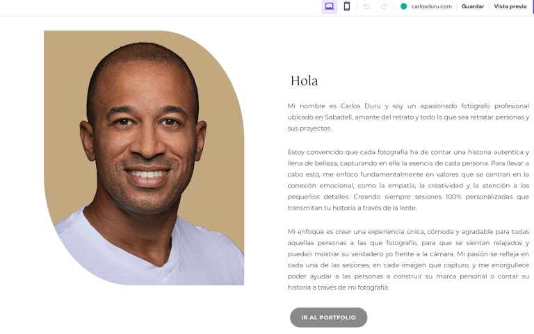 Mi nombre es Carlos, apasionado del arte fotográfico, especialmente centrado en el retrato y marca personal. Disfruto enormemente creando sesiones únicas, transformando cada momento en una experiencia memorable.