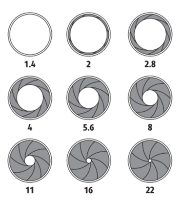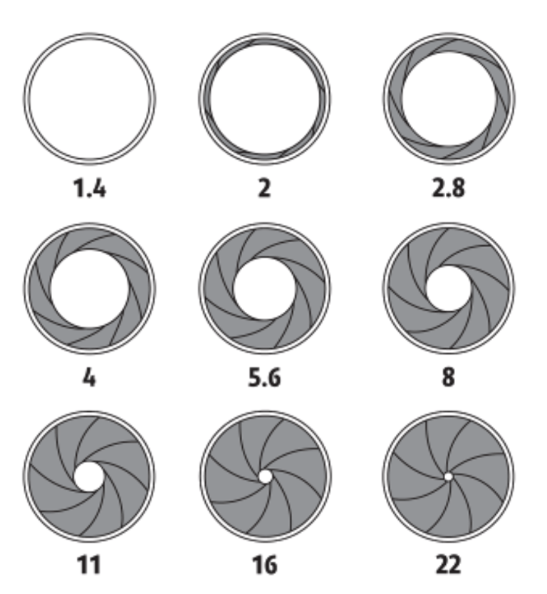 Denominados con una serie de números que para resumirlo mucho podrían ser memo técnicos con una f delante. Cada salto lo definiremos como un paso de luz, este paso concederá el doble o la mitad de luz en función si cierras o abres el diafragma.