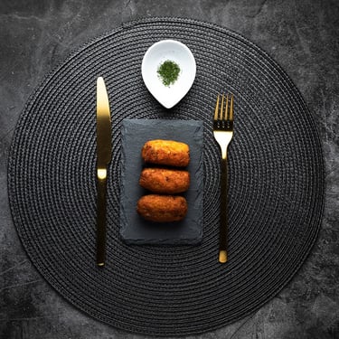 Cuando hago fotografía gastronómica a parte de todo el equipo que llevo, me gusta llevar fondos con textura, platos de diferentes colores, cubiertos y algún que otro mantel o posa platos, esto me ayuda a tener un número mayor de fotografías diferentes. En cuanto a equipo fotográfico llevo mi cámara Canon R6, dos lentes: