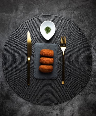 Se toma desde arriba, mostrando el plato y sus ingredientes desde una perspectiva aérea. Es útil para mostrar la disposición de los elementos en el plato y crear composiciones simétricas. Funciona muy bien con composiciones minimalistas y se va complicando mientras vas añadiendo diferentes elementos.